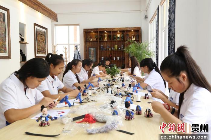 近日,在贵州省惠水县幸福移民社区的唐人坊产教融合基地车间里,生产部主管隆元碧正为贵州盛华职业学院(以下简称:盛华学院)2023级的学弟学妹讲授“唐娃娃”的制作工艺。13年前,从惠水农村走进盛华学院非遗学院的她,如今已成为基地核心骨干。