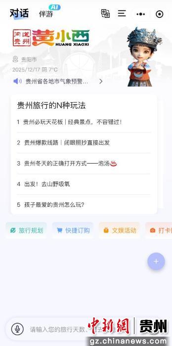 甚至并非真人,而是贯穿旅途始终的智能伙伴——她就是由贵州贵旅数网科技有限公司基于贵州旅游行业大模型打造的AI旅游智能体“黄小西”。
