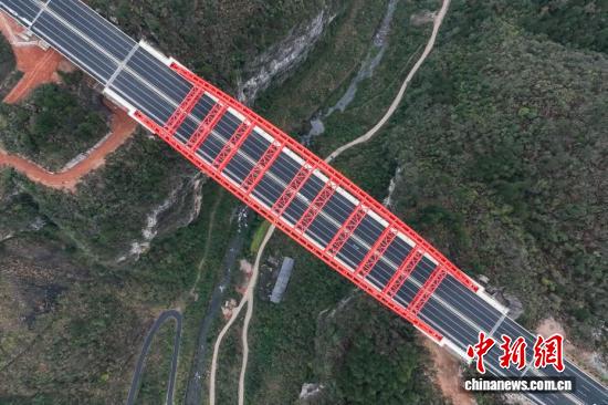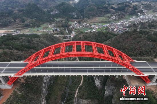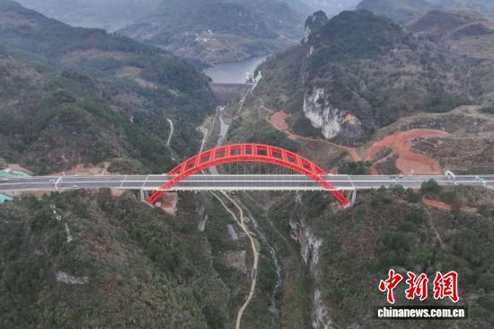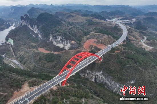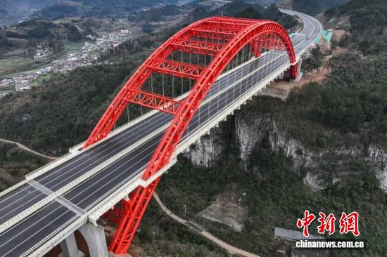 12月23日,航拍即将通车的贵州贵(阳)平(塘)高速公路马场河特大桥。马场河特大桥位于贵州省黔南布依族苗族自治州贵定县盘江镇马场河村,为主跨260米的中承式钢管混凝土桁架拱桥,全长381.5米。(无人机照片)