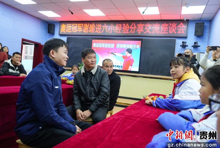 12月23日,贵州省毕节市纳雍县第六小学,纳雍籍奥运冠军谢瑜在与学生交流座谈。 杨英 摄