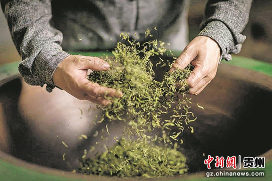 “都匀毛尖讲究的是清香,也就是嫩绿香,是用炒茶的温度来控制香型的。炒茶时,双手在锅里一气呵成。”谈到制茶,国家级非遗项目“都匀毛尖茶制作技艺”传承人张子全如数家珍。