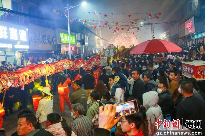 2月25日,市民群众与游客前往贵州省遵义市播州区三合镇观看舞龙闹新春民俗活动。李仁军 摄