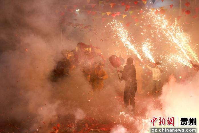2月25日,舞龙人员在贵州省遵义市播州区三合镇进行舞龙表演。李仁军 摄