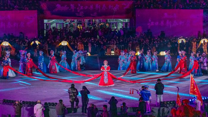 3月2日,江口县2026年新春灯会活动在体育馆举行,龙灯飞舞、茶灯悠扬,非遗展演、民俗荟萃相映成趣,吸引了上万市民群众及游客欢聚一堂,在热闹喜庆的氛围中共庆佳节、共享喜悦。