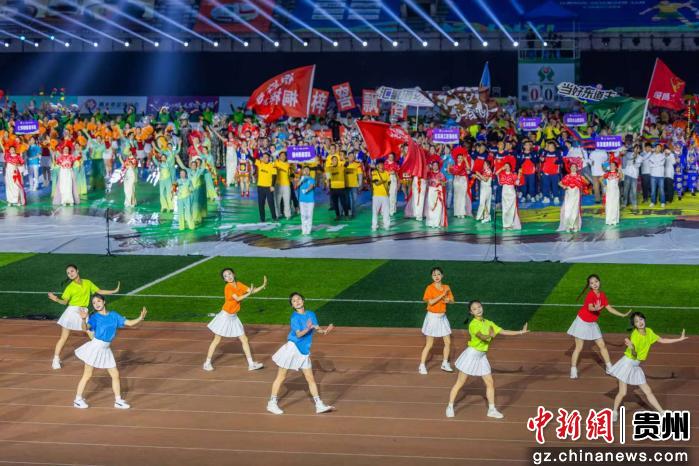 各地区代表队也纷纷将地区所属的非遗、文化、美食搬上绿茵赛场。播州区将剪纸、播州辣椒与旗袍相结合,通过模特舞步的形式,瞬间抓住了观众的眼球;绥阳县通过诗伴舞的表演,传达诗乡绥阳的意境;余庆县的“矮人舞”诙谐幽默,捂着肚皮上的娃娃脸随着舞蹈动作抖动,瞬间逗乐了全场男女老少。