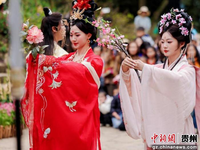 中新网贵州新闻4月11日电 近日,春意正浓的贵州安顺云峰屯堡景区,迎来一场跨越六百年的时空对话。由贵旅集团、安顺市西秀区人民政府主办的“上云峰・遇花神”花朝节正式启幕。这不仅是一场传统节俗的活化呈现,更是一次深度文化“破圈”尝试。一批国内知名导演、演员及影视从业者深入探访这座“屯堡古村”,并出席云峰屯堡文化发展座谈会,与当地政府、企业及非遗代表性传承人共议如何以现代视角与艺术手法,让屯堡文化走向更广阔的舞台。