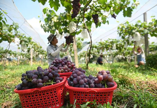 “我们寨冠村的葡萄成熟了,种植面积有100多亩,我们种植的品种有水晶葡萄、巨峰葡萄,还有茉莉香葡萄等,今年我们是以入园采摘为主,大概时间要持续到一个多月,欢迎大家入园采摘。”松桃苗族自治县匀丰家庭农场负责人李华军说。(龙阳雨 谢慧芳 戴刚)