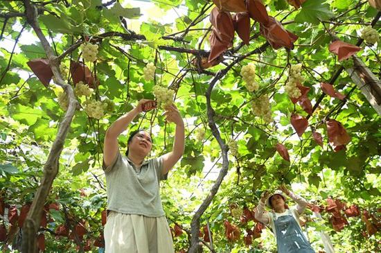 如今,该葡萄园凭借葡萄的口感和卖相,积累了不少客户,今年主要推出“入园采摘”。许多游客看到葡萄成熟后,陆续到果园采摘葡萄。