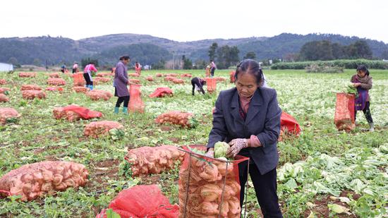 在销售环节,基地采用了“订单式”农业生产模式,通过与外地收购商建立长期稳定的合作关系,实现了以销定产,不仅确保了芥菜的销路,也避免价格受到市场波动影响,极大地降低了种植风险。目前,芥菜的地头收购均价稳定在每斤0.5元左右。