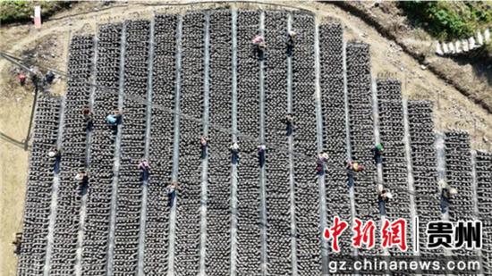 中新网贵州新闻11月10日电(谭书琴 周丽 曾凌峰)时下,贵州省松桃苗族自治县石梁乡的百亩木耳种植基地里一派丰收景象。100多亩标准化种植田上,整齐排列的菌棒如黑色矩阵般绵延铺开,肥厚饱满的黑木耳从菌棒小孔中簇拥而出,色如墨玉、质润如脂。村民们穿梭其间,按照“采大留小”的原则麻利地采收头茬黑木耳,奏响了产业振兴的乐章。