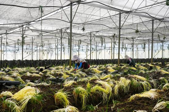 在清镇市犁倭镇石牛村的大棚基地里,一垄垄金灿灿的韭黄整齐排列,村民们忙着收割、捆扎、装筐,空气中弥漫着浓郁的韭香。这片32亩的韭黄种植区,正以“党支部+公司+合作社+农户”模式,结出乡村振兴的硕果。刚收割的韭黄。沈建华摄石牛村地处贵阳市西部...[详情]