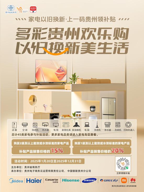 2025年,“一码贵州”平台将继续承接以旧换新的补贴申领工作,持续优化申领流程,深化政企联动,以更高效的数字化服务为消费者提供“购新无忧、补贴直达”的优质体验。(完)