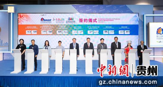 当天,贵州金钗兰生物科技有限公司分别与芳香世家(澳门)香精香料有限公司、嘉俊贸易(澳门)有限公司达成总金额2000万元人民币订单。贵州益佰大健康医药股份有限公司与上澳吉国际商贸有限公司及巴西DC BRAZIL公司,就冰冰猴系列硬质糖果在巴西注册功能性食品上市销售达成合作意向并签约。
