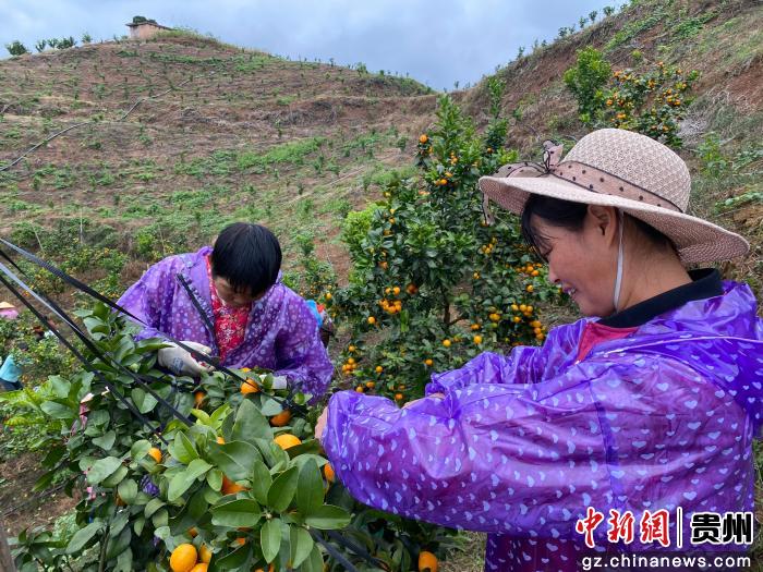 中新网贵州新闻11月5日电 (李贤丽)近日,贵州省独山县下司镇三兴村1000余亩柑橘也迎来丰收,果农们正抢抓时节采摘装车,确保柑橘抢“鲜”上市。