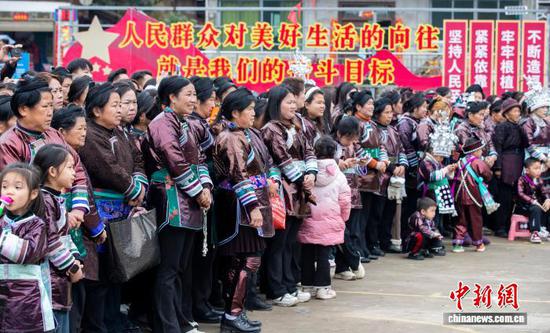 图为民众在贵州省从江县刚边壮族乡银平村观看芦笙舞表演。罗京来 摄