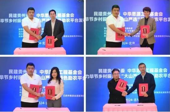 发布会上,“大山严选”平台负责人分别与中华思源工程基金会、拼多多、一亩田、叮咚买菜、锅圈食汇签署了合作协议,民建贵州省委、毕节市商务局与北京本来工坊科技有限公司签订了三方合作协议。