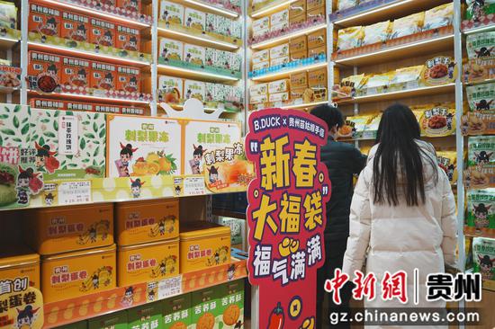 1月17日,消费者在贵州苗姑娘手信门店挑选伴手礼。周燕玲摄