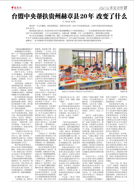 《中国新闻》报关注:台盟中央帮扶贵州赫章县20年 改变了什么
