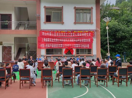 “以前村里的篮球场破旧不堪,只有一块篮板和铁圈,连球场线都没有,现在终于可以有一个现代化的球场了可以投三分球!”15岁的当地少年常江湖抱着篮球,已迫不及待冲向场地。15点20分,揭幕战鸣哨——村民联队VS赞助方联队。雨越下越大,球员脚底打滑却越打越嗨:贵阳海嘉学校的教师一个急停跳投,球在雨幕里划出一道弧线,“唰”地空心入网;河山村驻村干部李春虎一个勾手打成2+1,观众席上,暑托班的孩子们扬起老师发放的气球中呐喊助威。
