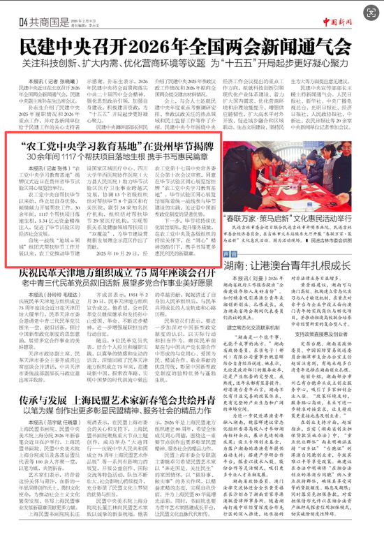 《中国新闻》报关注:“农工党中央学习教育基地”在贵州毕节揭牌