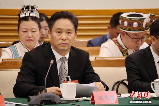 3月6日,全国人大代表、贵州省农业农村厅党组书记、厅长张集智在贵州省代表团开放团组活动中回答记者提问。中新网记者 刘美伶 摄