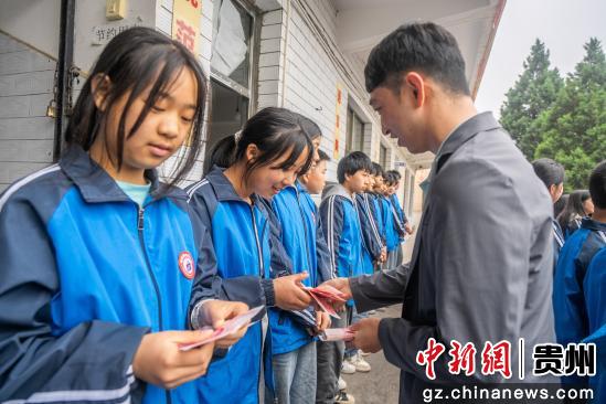 中新网贵州毕节5月16日电 (罗大富)端午节临近,在贵州省毕节市七星关区杨家湾镇站坡村,一场特别的捐资助学公益活动在祥雁学校操场上举行。