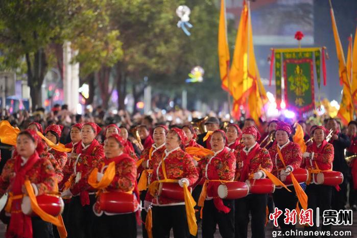 图为务川仡佬族苗族自治县2026年“马跃山河·都濡闹春”春节巡游活动现场。申逸恺 摄