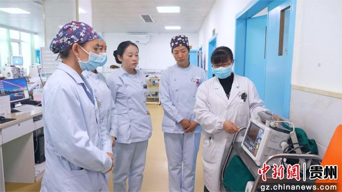 图为开阳县人民医院肾内科主任潘梅在给科室医务人员进行业务培训。