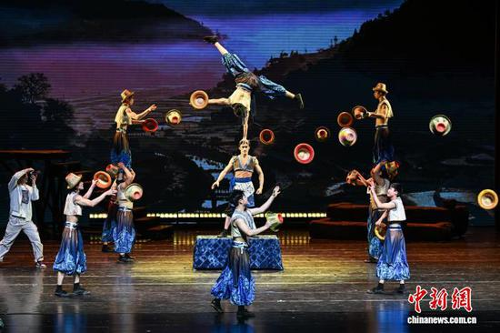今天为大家推介的每日一图是贵州省杂技团排演的杂技剧《白云深处有人家》演出现场。瞿宏伦 摄