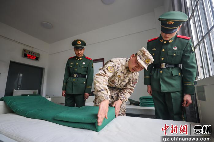 图为安顺支队某中队骨干教授新战友叠被子技巧。
