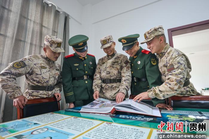 图为安顺支队某中队班长与下队新战友一起翻看过往相册。