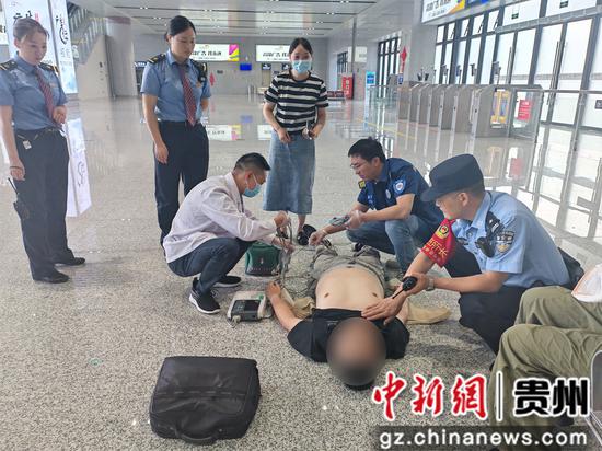 贵州黔西:男子高铁站突发心肌梗塞 警民紧急救助保平安