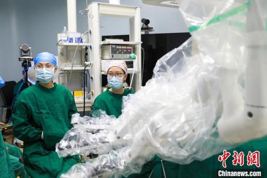 图为浙江省人民医院毕节医院开展5G超远程机器人援助腹腔镜下肾部分切除术。(医院供图)