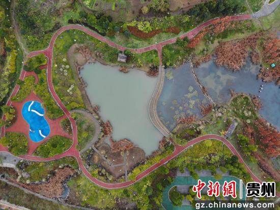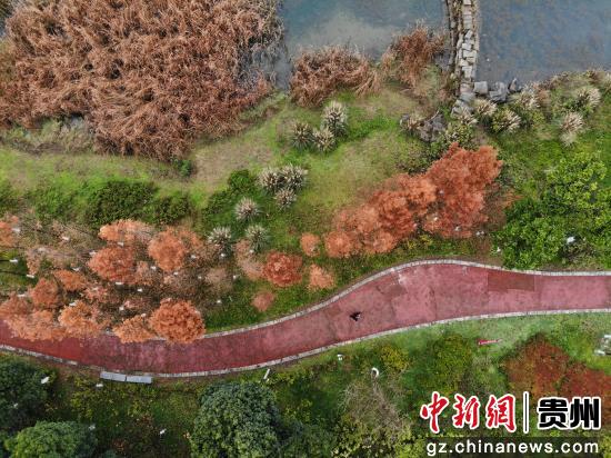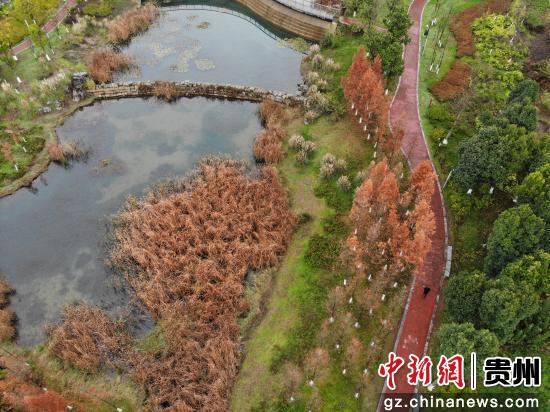 初冬时节,贵州省毕节市百里杜鹃湿地公园层林尽染、色彩斑斓,与民居、湖水、青山交相辉映。漫步其间,清新的空气和绚烂的景色交织成一幅动人的冬日画卷。(施乐)