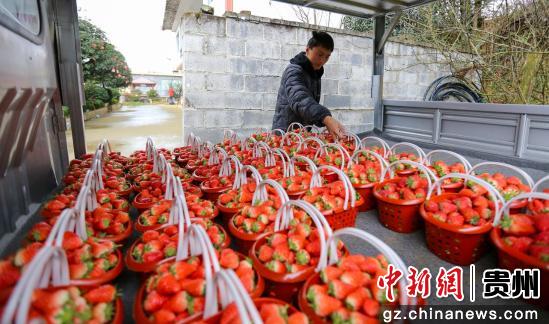 2月7日,村民把分装好的草莓装车,准备发往县城超市售卖。