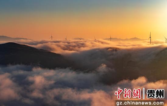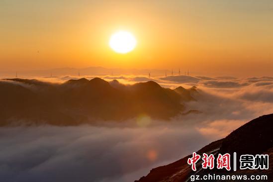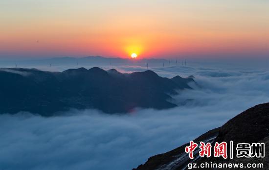 2月10日在韭菜坪景区拍摄的日落云海景观。 陈春志摄