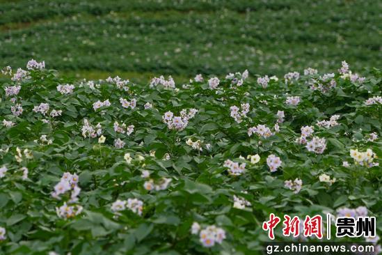 连日来,贵州省毕节市威宁彝族回族苗族自治县150万亩马铃薯花陆续绽放,花开成“海”,丰收在望。(赵庆能 摄)