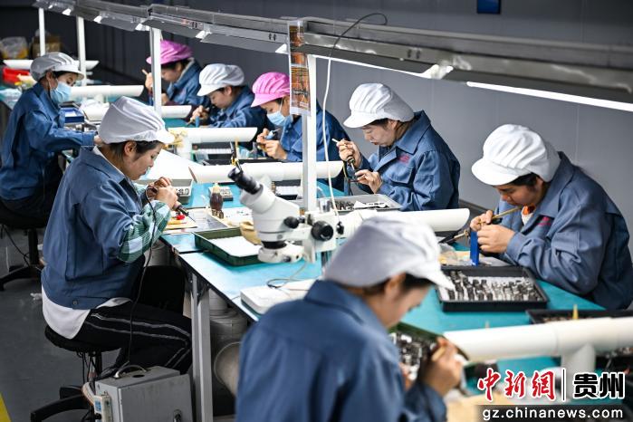 1月20日,位于贵州省毕节市七星关区的后藤电子科技(贵州)有限公司车间内,工人加紧生产音响电器线圈产品供应市场。据悉,该企业经九三学社贵州省委员会联引,是一家以生产各类新型电子元器件、音响电器线圈、激光线圈等为主的电子科技企业,年产值3700万元人民币,可解决当地500名民众就近就业。