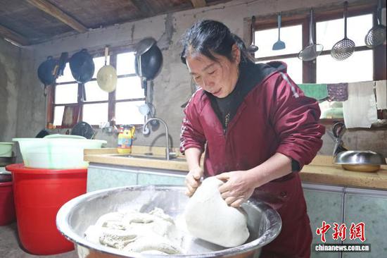 通过手工揉搓将熟芡与米粉充分融合。唐鹏 摄