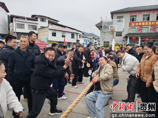 近日,贵州省罗甸县边阳镇前进村以“迎春接福千万家·乘风前进万事兴”为主题,在村文化广场举办2026年“乡村振兴”文体系列活动,精心设置篮球、拔河、抓鸡抓鸭趣味赛等特色活动,让全村村民在竞技与欢乐中感受浓浓的新春氛围,共庆马年新春。(伍米娜)