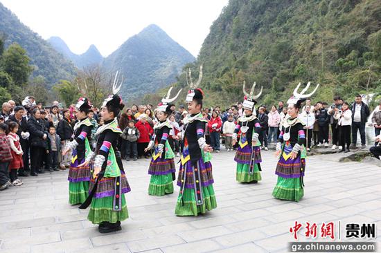 (新春走基层)免票政策迎客来 贵州荔波小七孔新春人气旺