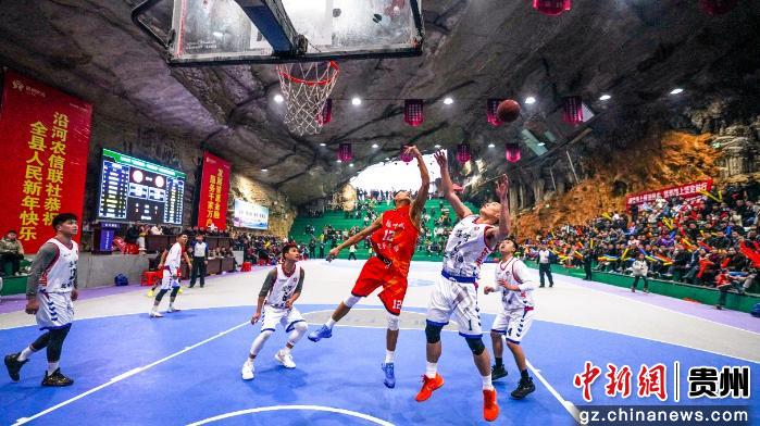中新网贵州新闻2月6日电 (张洪全 陈青青 杨莎莎)为点燃全民观赛的火热氛围,提前感受赛事的热血与激情。“遇见洞篮·年味沿河”男子篮球预热赛5日在贵州省铜仁市沿河土家族自治县黑水镇凤鸣洞篮球场火热开赛。