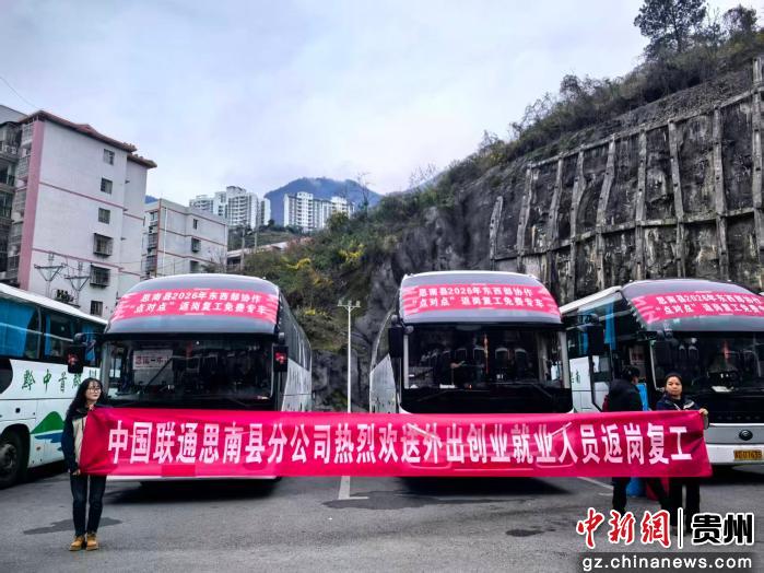 中新网贵州新闻3月5日电 为全力助推节后企业复工复产,切实保障务工人员顺利返岗,中国联合网络通信集团有限公司思南县分公司与思南县人力资源和社会保障局结对开展“点对点”免费输送劳动力返岗复工活动,以优质、精准的服务为思南籍务工老乡筑牢返岗保障,让务工人员从“家门口”直达“厂门口”,暖心护航返岗路。