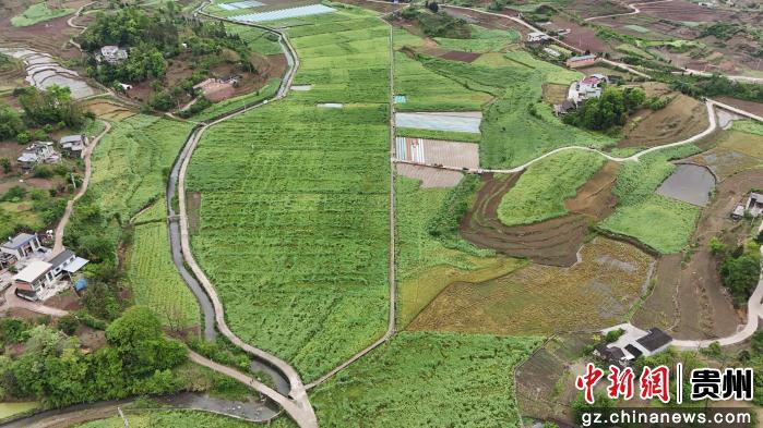 航拍石阡县本庄镇乐桥村稻油轮作基地。