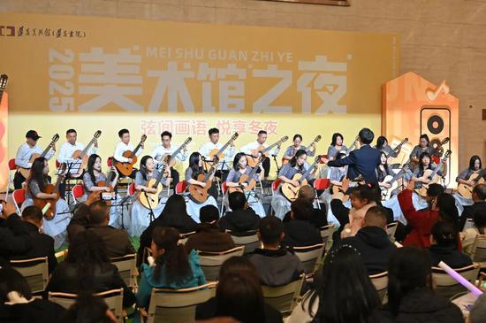 从高质量的展览展厅、艺术表演的“静态”观看,到沉浸式体验感受的美食集市围炉煮茶、多彩非遗手工制作的动态融入;从趣味性知识普及活动的举行,到从公共美育教育从节日到日常的延伸拓展;从人气爆棚的“落日音乐会”“美食纯咖”等丰富场景打造,到游戏联盟、互动影像机等互动性内容增加。三年多来,“美术馆之夜”不断的推陈出新,引得越来越多群众前来打卡体验,既精准把握了公众公共文化需求与高雅艺术审美之间的结合点,又巧妙地促进了传统文化的创造性转化和创新性发展,增强了参与者、体验者、互动者的文化认同、文化自信和自豪感。