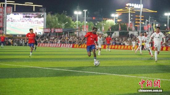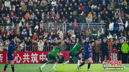 资料图为贵州“村超”举行的国际友谊赛。榕江融媒供图