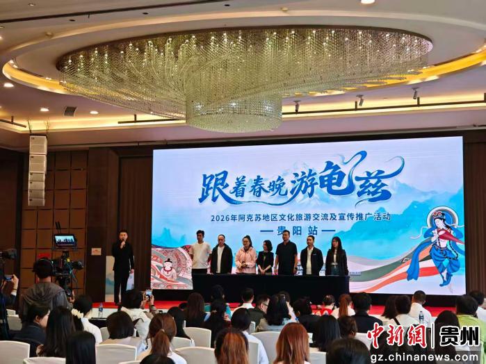 中新网贵州新闻4月15日电 (石小杰 吕娜 赵金星)4月15日,“跟着春晚游龟兹”2026年阿克苏地区文化旅游交流及宣传推广活动在贵州省贵阳市举行。活动以“现场推介+网络直播”的创新形式,全方位、多角度推介阿克苏的自然风光与人文底蕴。