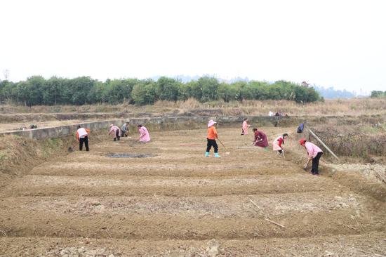 走进麻万镇花园村的千亩玉竹种植基地,连片的田垄规整排列,刚经过机器翻犁的土壤呈现出均匀的土黄色,透着浓浓的耕耘气息。田间,20余名务工群众分散在地头,手持农具有条不紊地开展覆土、清沟等管护作业。