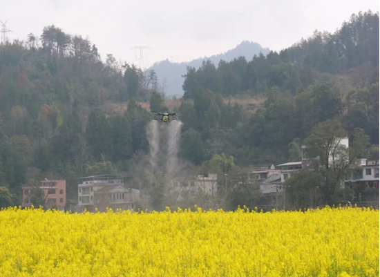 走进孟溪镇安山村和大路镇桂芽村的油菜核心种植示范点,连片的油菜花流金溢彩。田野之上,科技感十足的春管图景正同步上演,一架架植保无人机低空掠过,精准实施“一促四防”飞防作业。随着混配好的肥、药、调节剂等均匀喷施,促根壮秆、防病防虫、防早衰及防花而不实的多重目标一次达成,科技赋能下,田管效率与作业精度实现了质的飞跃。
