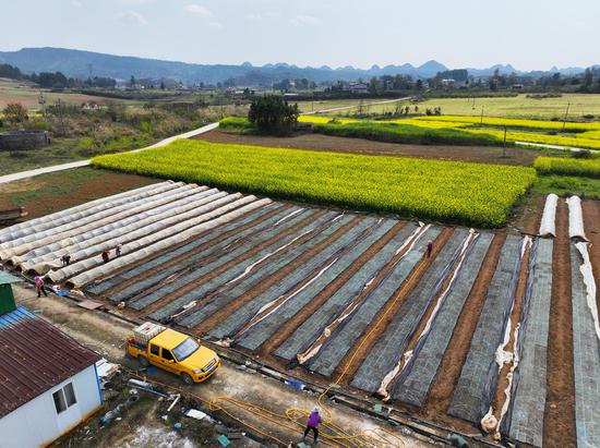独山县高坪村甜玉米育苗正当时